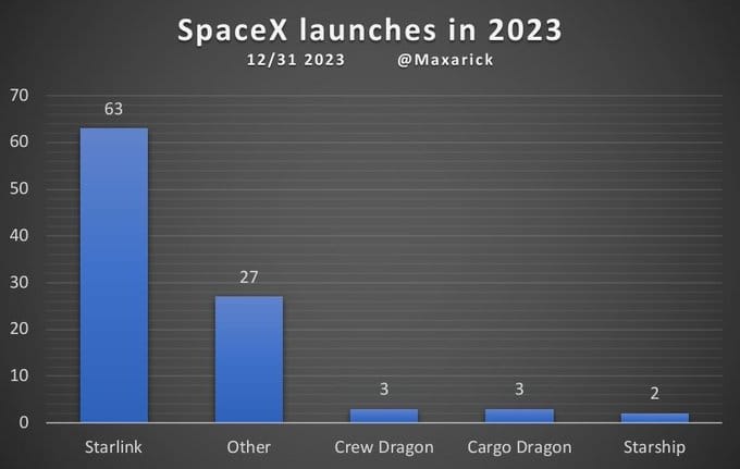 Below, @Maxarick on twitter has us covered, highlighting every SpaceX launch with this chart! Huge shoutout to them for the graph, please make sure to check out their work!