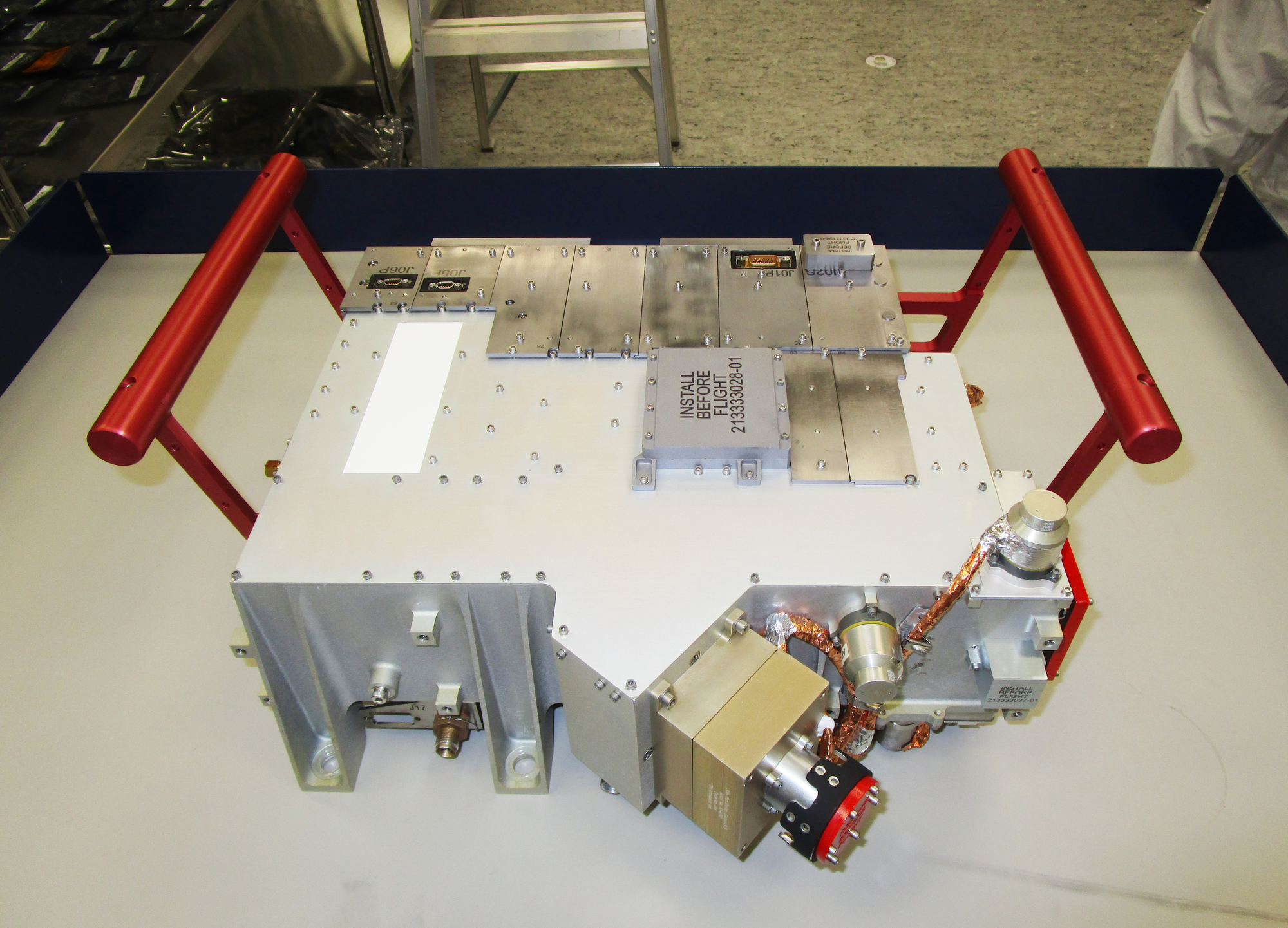 Rather than orbiting Europa itself, the Clipper will orbit Jupiter and use gravity assists from Europa, Ganymede, and Callisto to adjust its trajectory. This will allow it to conduct flybys of Europa at altitudes ranging from 25 to 2,700 kilometers (16 to 1,678 miles) over its 3.5-year mission. Each flyby will cover different regions of Europa, creating a global topographic survey and providing data on ice thickness. The Clipper could also fly through water vapor plumes erupting from beneath Europa’s icy crust, potentially sampling the subsurface ocean without landing or drilling. The spacecraft is expected to endure a total ionizing dose of 2.8 megarads from Jupiter’s radiation belt. To protect its electronics, Europa Clipper will be equipped with a radiation vault made of aluminum alloy walls that are 0.3 inches (7.6 mm) thick, with the electronics nestled in the spacecraft’s core for additional shielding.