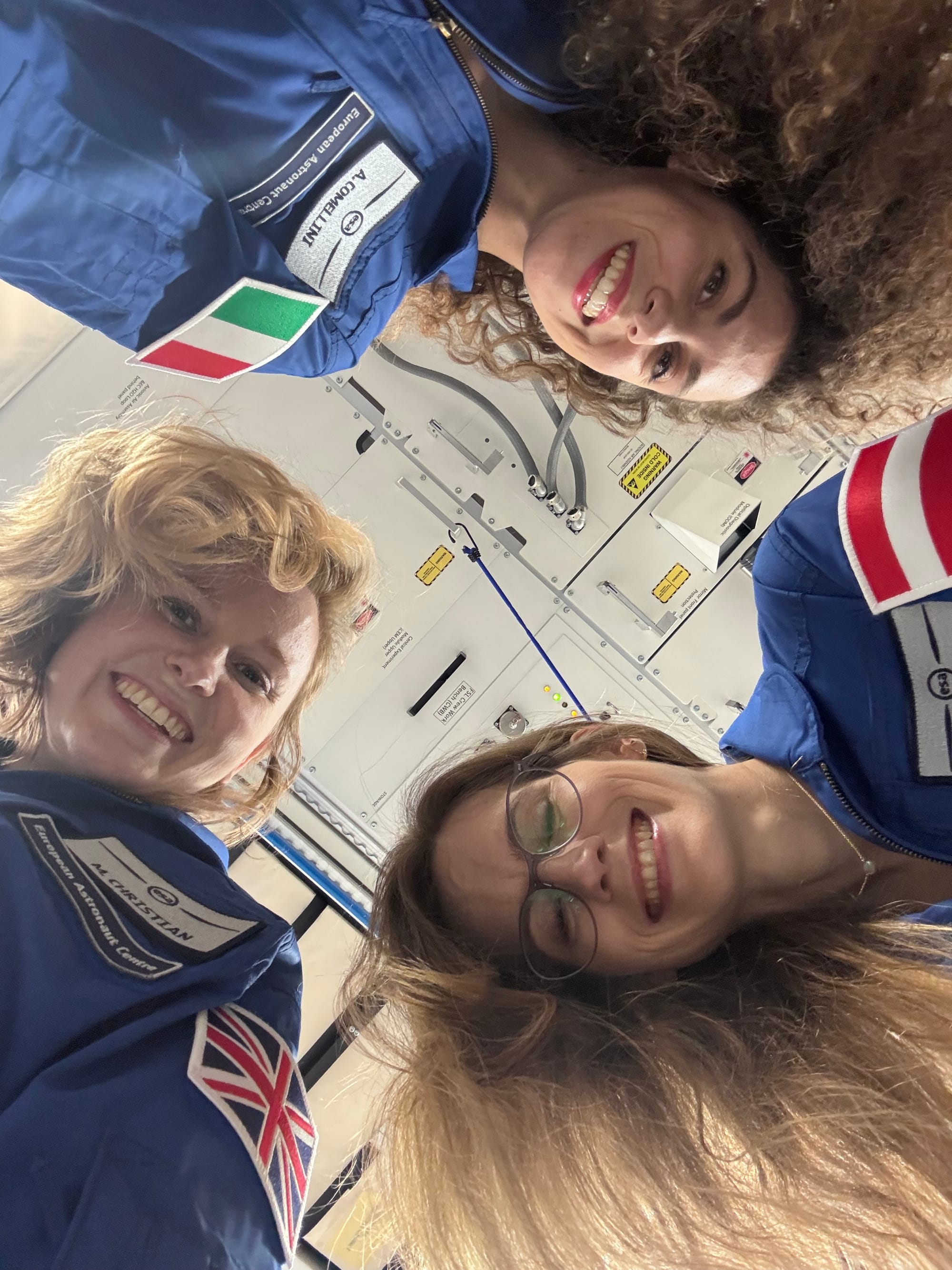 Meganne, Anthea and Carmen recently completed their first ART training block at the European Astronaut Centre (EAC) in Cologne, Germany. In this image, they are pictured inside a mockup of the Columbus module, Europeโs permanent laboratory on the International Space Station.