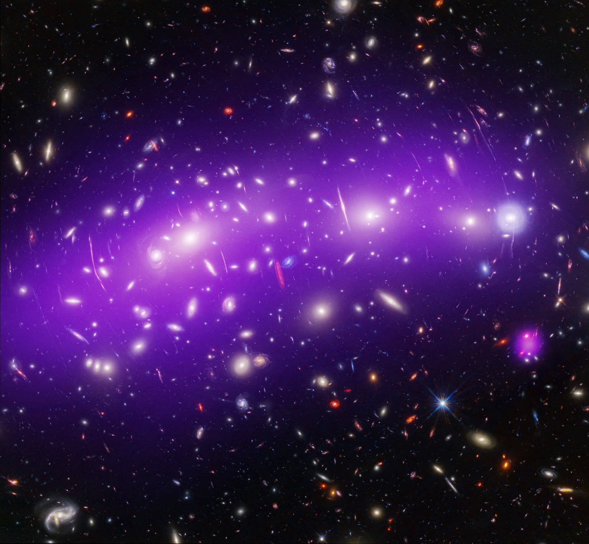 Combining data from both Chandra and Webb, astronomers got this image in return. This particular galactic cluster is some 4.3 BILLION light-years away, for comparison, the closest galaxy to our own, Andromeda, is a relatively close 2.5 million light-years away, give or take. The purple you see arching across the image is a reservoir of superheated gas that was captured by the Chandra telescope. There are hundreds of galaxies in this image, all with hundreds of billions of stars. The universe is truly a mysterious and beautiful thing and we are so lucky to experience it.